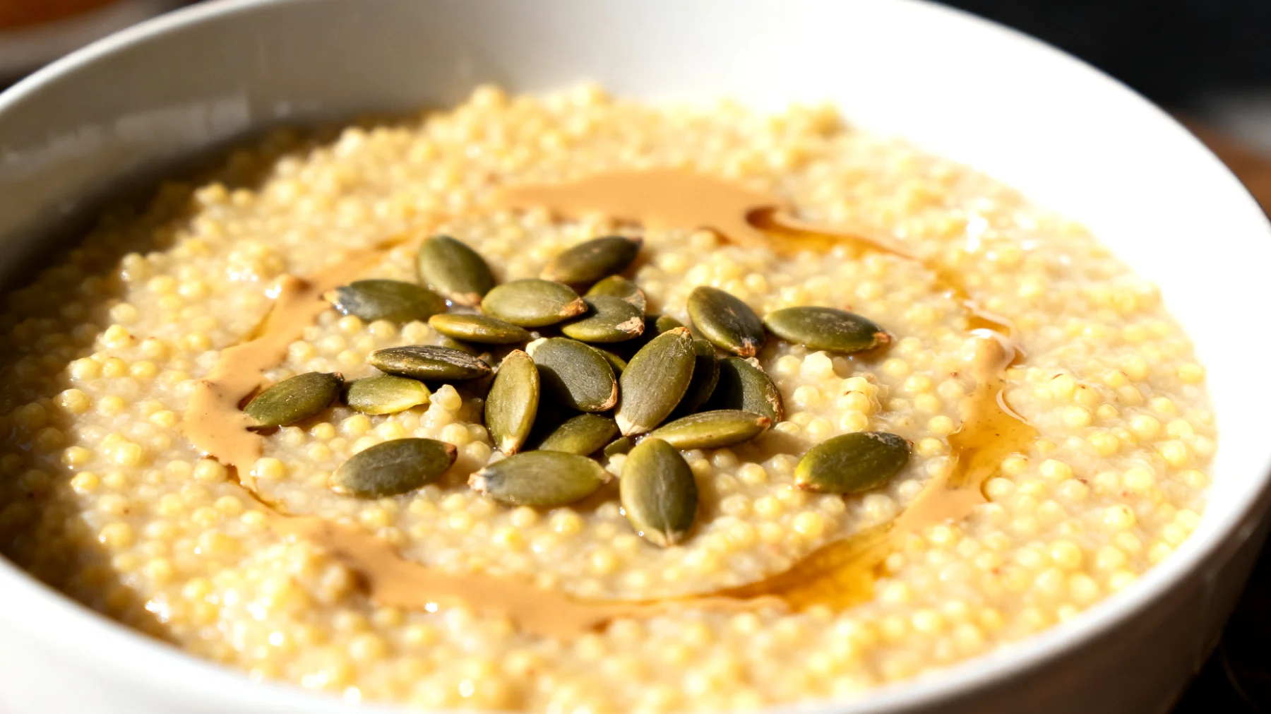 La temperatura di consumo non è un dettaglio trascurabile. Il porridge consumato caldo favorisce la digestione e l’assorbimento dei nutrienti, aspetto particolarmente importante per chi ha un’attività digestiva rallentata da allenamenti intensi. Il calore inoltre esalta il sapore delicato e leggermente dolce del miglio, che si sposa perfettamente con la cremosità del tahini e il gusto tostato dei semi di zucca.